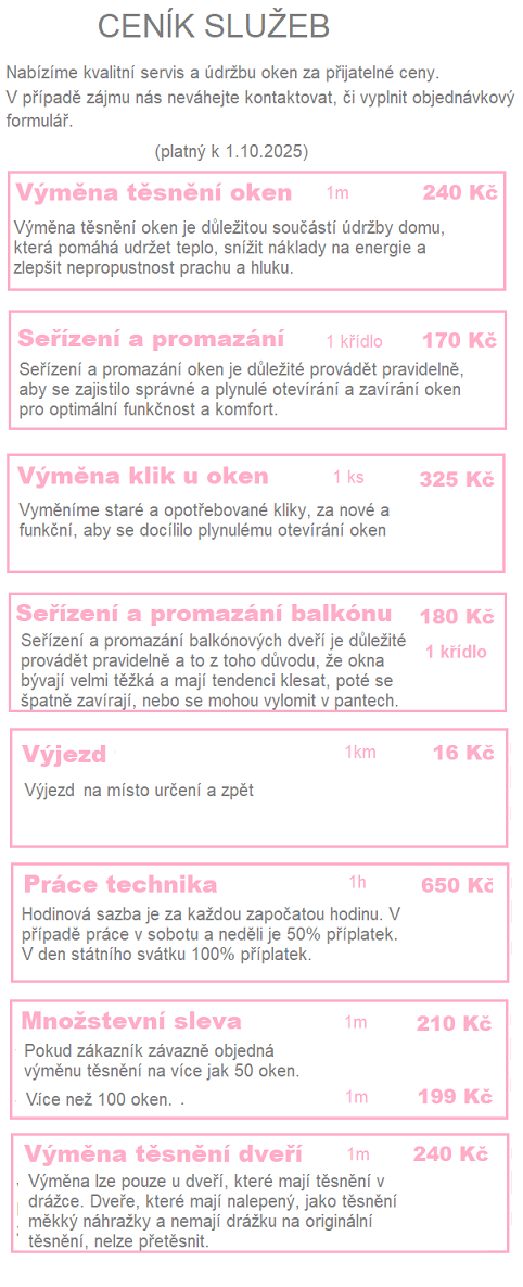 CENÍK SLUŽEB DÁRKOVÝ POUKAZ Kontakt